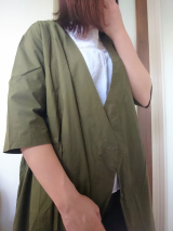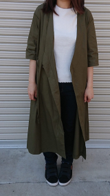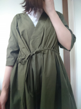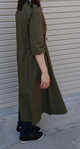 ワンピースとして着用した時のベルト使いや程よいフレアも女性らしい印象に。