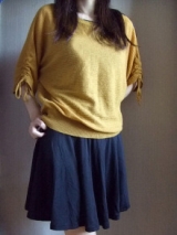 【スカート】総丈:約45cm、ウエスト:約56~84cm、ヒップ:約112cm、、裾幅:約128cm