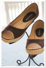 ジュートの夏らしい涼しげなイメージが魅力的な、当店オリジナルのフラットタイプのオープントゥーシューズです。