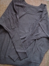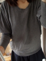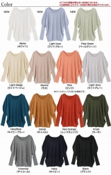 ドルマンスリーブ×長めのリブ袖で、パフショルダー風のデザインが可愛いニット