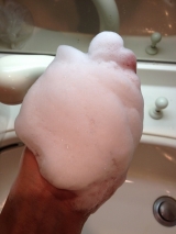 天然美人 さまから ベビちゃん石鹸 を頂きました♪楽天でも人気のベビちゃん石鹸、初体験です 泡立てネットで泡立たせるとホイップクリームのような泡 2012/08/21