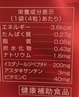 「アンカーカプセル」(1包4粒)には、イミダペプチド(アンセリン・カルノシン)が200mg含まれ、さらに「ビタミンC」、「アスタキサンチン」の3種類の成分が入っています。1日1包を目安にお飲み下さい。