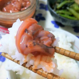 ・商品説明:「イカの王様」と称される幻の高級イカ、赤イカを用いた塩辛。唐辛子の辛味がアクセント。