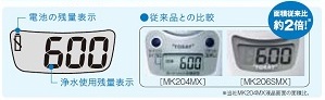 ※当社MKC.MXJとの比較。流量は動水圧約0.1Mpa時。MKC.MXJのろ過流量は1.6L/分。