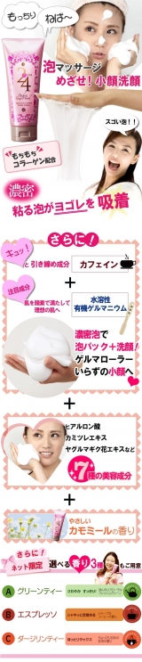 もちもち「コラーゲン」&キュッと引き締め成分の「カフェイン」、肌を酸素で満たしてくれる「有機ゲルマニウム」配合の濃密泡の洗顔フォームです。