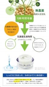 豆乳に含まれる天然のうるおい成分とアミノ酸、そして複合乳酸菌が 生み出すエッセンスの働きで、乾燥して弾力を失ったお肌に しっとりとした潤いとつや、そして弾むようなハリをとり戻します。