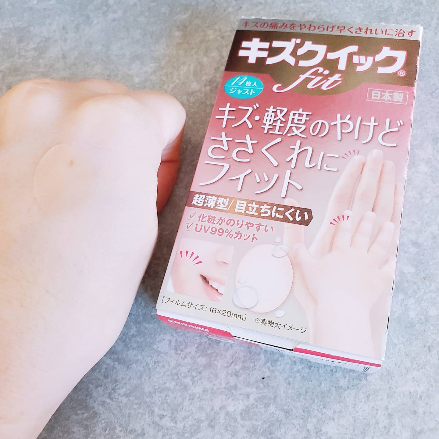業界最薄!! キズクイックfit 傷の痛みを和らげ早くきれいに治す ハイドロコロイド絆創膏です☺ キズ口から出る体液を吸収・保持し、 キズを早く治す環境を整える、湿潤療法 (モイストヒーリング)タイプの絆創膏です。 サイズや用途に合わせて選べます。 私が試してるのはジャストサイズ 顔に貼ったけどお肌に馴染んで目立ちにくい☺ 小傷とか子供が顔に傷つけた時にもいいです👌 特殊エンボス加工の肌色フィルムで、 肌と一体化。 水仕事も、お風呂入っても剥がれにくかったです👍 業界最薄0.15mmのフィルムで 違和感が少なく、しっかりフィット ハイドロコロイド製品として業界初の UVカット機能✨ #PR #東洋化学株式会社 #キズクイックfit #モイストヒーリング #ハイドロコロイド #かばたん #ばんそうこう屋 #東洋化学 #monipla #toyokagaku_fan