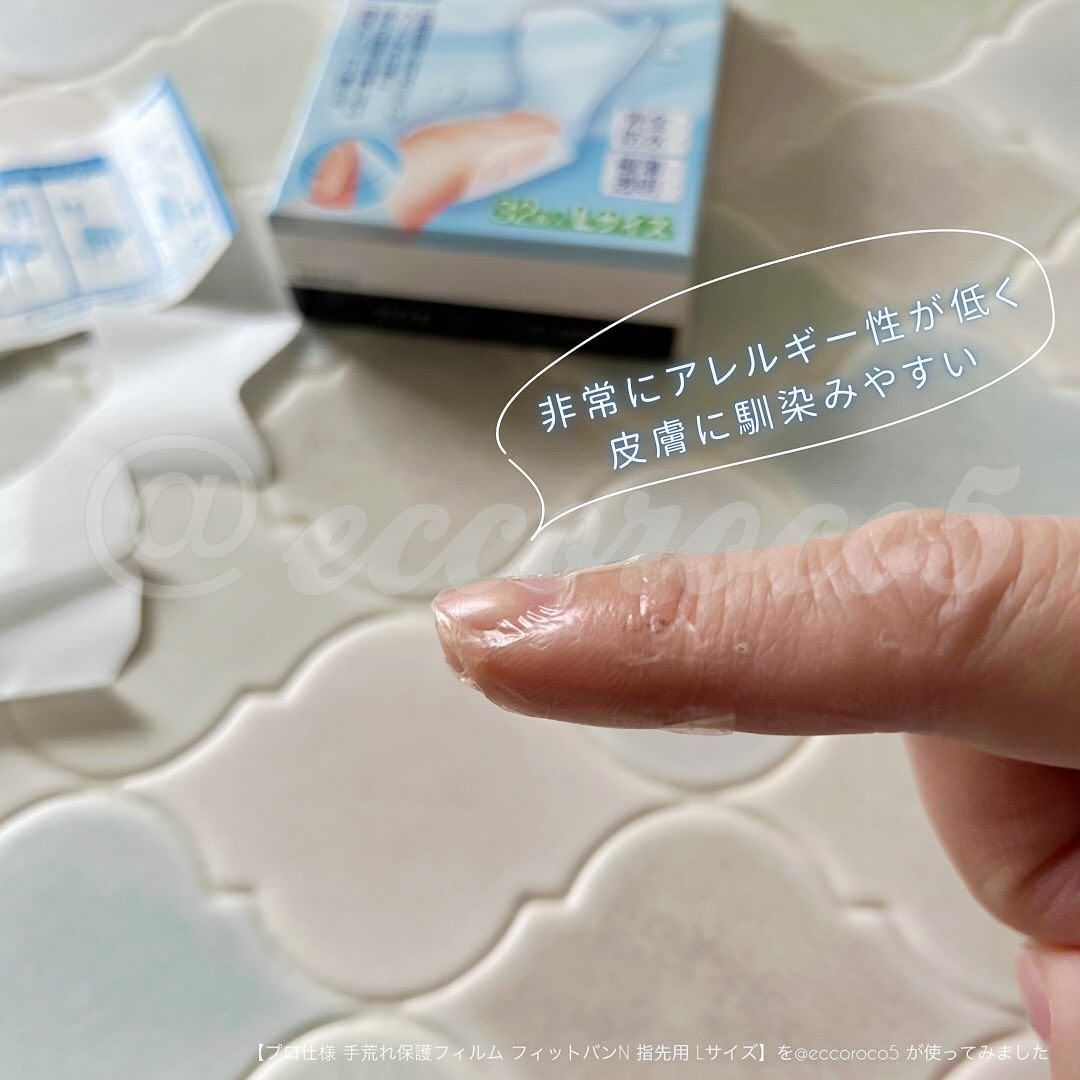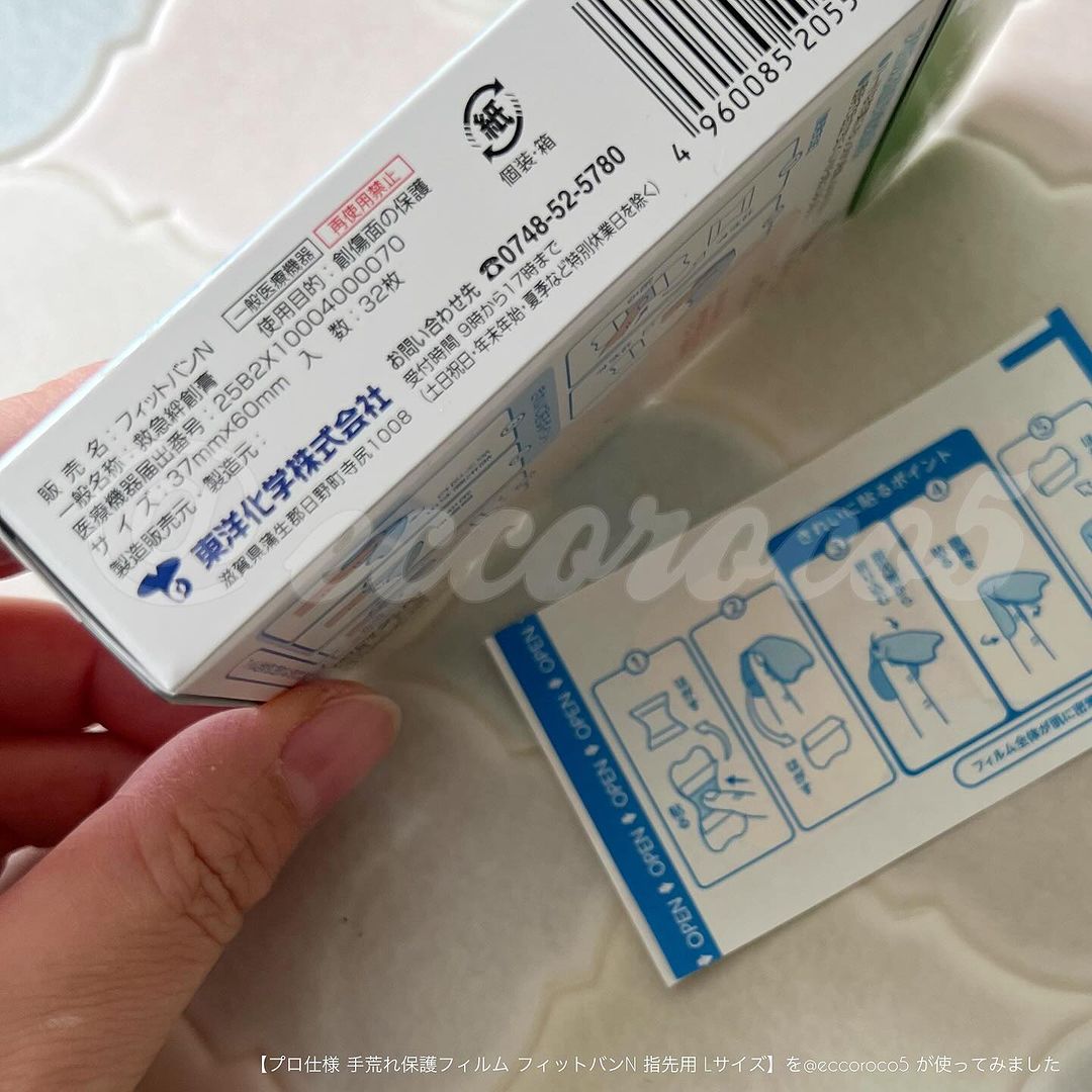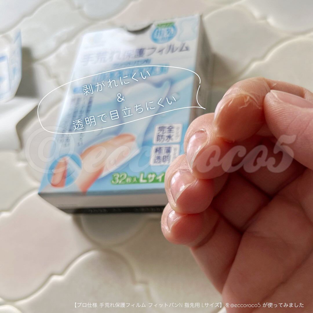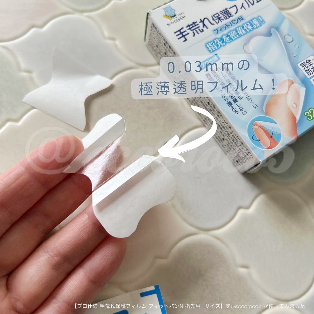 #PR \指先のケガや ささくれも もう怖くない!🩹/ #東洋化学 様より #提供 いただき、 💁【プロ仕様 手荒れ保護フィルム フィットバンN 指先用 Lサイズ】を u0040eccoroco5 が使ってみました🎈 ▼ 親指の指先もしっかり覆えるサイズな 完全防水のばんそうこう👍 ハードな水仕事の理美容師さん、飲食業の人たちにも愛用者が多い、プロ仕様。 指先に貼りやすい形状で 極薄透明フィルムがピッタリフィット🫥!! その薄さは なんと ˗ˏˋ 0.03mm ˎˊ ˗ 東洋化学独自のシリコーン粘着剤で肌なじみを良くしてあり、水仕事に強いのが一番の特徴🚰💪 指の先端から貼るのが使い方のポイント💡 薄すぎて最初は付け方に戸惑うかもだけど、少々失敗しても指に密着してくれるから、気にしなーい🙆♀️ 東洋化学独自のシリコーン粘着剤は、非常にアレルギー性が低く、皮膚に馴染みやすい💡 アトピー性皮膚炎で手肌が敏感な家族も気に入って使ってる💕 高い密着性と防水性を実現していて、 洗い物しても、手洗いしても、お風呂に入っても… 剥がれにくい💨 そして、透明で目立ちにくい🪟✨ 指先をケガした時、今までは水を扱うのが恐怖だったけど… もう怖くなーーーい🏥 キッチンや薬箱に常備しておくべき絆創膏💡 水仕事が多いお仕事や、主婦・主夫への プチギフトにも🎁 ▼ 🛒購入できる場所は…🛍 公式通販から✨ 1回のお買物が990円(税込)以上で送料無料なので、 こちらの商品を一つ買うだけでも対象👍 ▼ 《商品詳細》-——————— 《商品名》 プロ仕様 手荒れ保護フィルム フィットバンN 指先用 Lサイズ 《メーカー名》 東洋化学 《価格》 1,078円(税込) 《内容量》 32枚入り ———————————— 🗣《この投稿で紹介した情報は掲載日時点のものです。情報が変わっている場合もありますので、最新の情報はHP等でご確認ください。また、こちらの投稿内容はあくまで個人の感想です。》 u0040kabatan_toyokagaku #PR #東洋化学株式会社 #プロ仕様手荒れ保護フィルムフィットバンN #手荒れ対策 #指先の絆創膏 #ばんそうこう屋 #かばたん #monipla #toyokagaku_fan #フィットバンN指先用 #フィットバンN #絆創膏 #プロ仕様 #指先の傷 #ささくれ #ささくれ対策