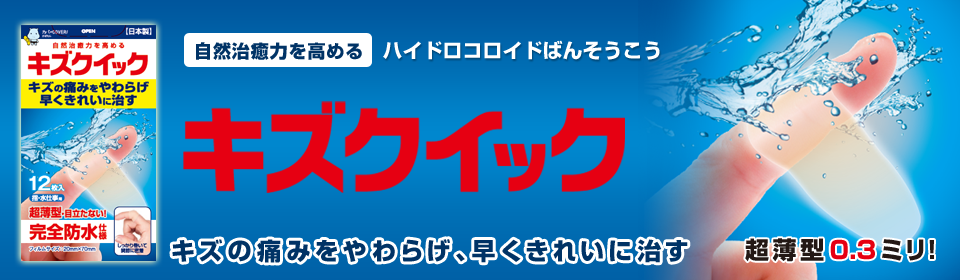 キズの痛みをやわらげ、早くきれいに治すハイドロコロイドばんそうこう。
