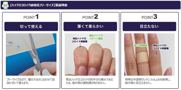 キズの大きさに合わせて切って使える【ハイドロコロイド絆創膏 フリーサイズ】