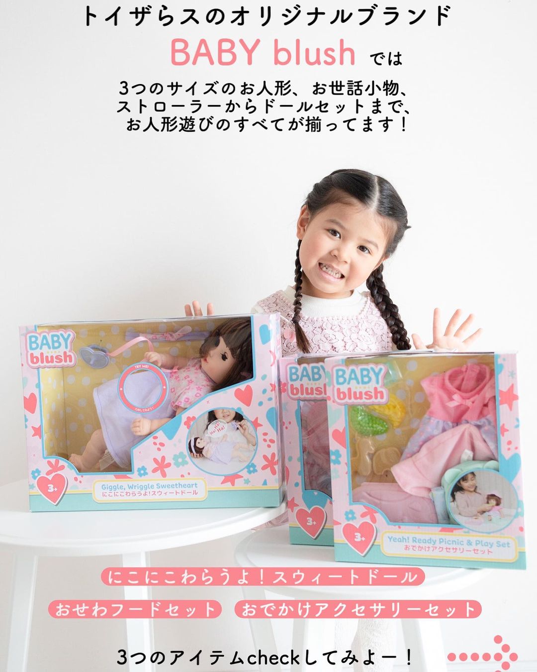 ♡ お人形遊びは男の子にも女の子にも とても良いんだって😌✨ 思いやりの心や母性が育まれるし やり取り遊びを通じて言葉の発達にも 良い影響を与えるんだとか✨ トイザらス( u0040toysrus_jp )のオリジナルブランド 『BABY blush ベビーブラッシュ』は 3つのサイズのお人形、お世話小物、 ストローラーからドールセットまで、 お人形遊びのすべてが揃ってて優秀👏✨ 足をバタバタさせて笑うお人形は リアルで可愛いかったし 充実のお世話セットにもビックリした🫢💓 3つのアイテムをお迎えしたので swipeして見てみてね♡ トイザらスのオンラインストアや 店頭で購入出来るよ💗 𓈒𓏸⑅︎ ┈┈┈┈┈┈┈┈┈┈┈┈┈┈⑅︎𓏸𓈒 ︎︎︎︎☑︎ ベビーブラッシュ にこにこわらうよ!スウィートドール 商品番号: 731858800 価格:2,299円 ︎︎︎︎☑︎ ベビーブラッシュ おせわフードセット 商品番号: 731897900 価格:1,499円 ︎︎︎︎☑︎ ベビーブラッシュ おでかけアクセサリーセット 商品番号: 731898700 価格:1,499円 𓈒𓏸⑅︎ ┈┈┈┈┈┈┈┈┈┈┈┈┈┈⑅︎𓏸𓈒 ✻ RINA ✻4y5m u0040rina_1101_rina #トイザらス #トイザらス限定 #toysrus #ベビーブラッシュ #お人形遊び #ごっこ遊び #おもちゃ #玩具 #子どものいる暮らし #育児 #お子さまの年齢 #monipla #toysrus_fan #4歳 #キッズモデル #おままごと
