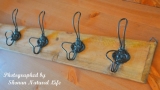 ナチュラルカントリーテイストの暖かみある古木にダブルフックが5つ付いたウォールフックです。