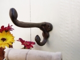 ヨーロッパのお部屋で遠い昔から使い込まれているようなトラディショナルで飽きのこないデザインが魅力的で、渋みのあるブラックカラーのアイアンフックが、淡い古木の色彩をグっと引き締めてくれていて、何ともいえない絶妙なバランスです。
