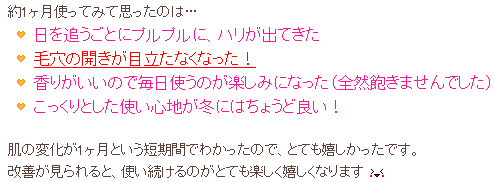ブログ記事の一部ですが、以前クリームの長期モニターイベントを実施した際にいただいた写真です。