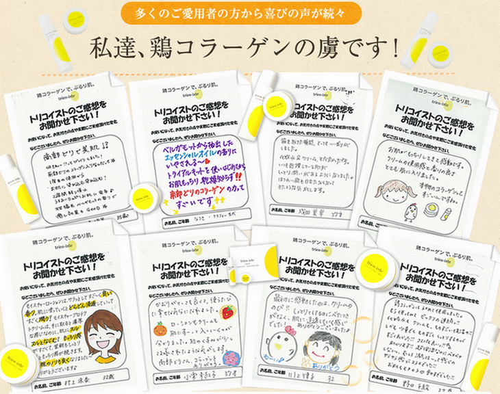 うるおいがとどまり、もちもち肌を長時間キープ!また、トリコイストのコラーゲンは飼育期間中、薬品を一切使わずに育てた「南部どり」からコラーゲンを抽出。