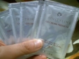 すばやく肌に馴染み、敏感肌にも対応で、しかもべたつきがないというトリニティーラインのクリームサンプルをGETだぜ!いわゆるオールインワンエイジングケア化粧品です水を一滴も加えずに美容成分95%配合らしい…あとの5%はなんだろうと思ってしまうのは性分だろうか・・・パウチから出してみると結構ミルキー… 2012/02/16