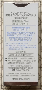 【トリニティーライン】薬用ホワイトニング UVミルク(医薬部外品)をお試ししました* こちらのUVミルク、何がすごいって、美白もエイジングもできちゃうところ 紫外線によって、お肌って老化しちゃうんだそうです 生活紫外線の蓄積が、シワやシミ、たるみ、乾燥につながっていくので、 季節を問わ… 2013/08/30