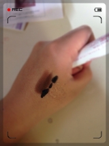 モニプラ当選レポ♥️ 今回は クレンジング! ミニサイズなんだけど、携帯と比較したかんじ 試しに手につかったみました 割といつもバッチリメイクをするから 手にはアイシャドウ、マスカラ、リキッドライナー、ペンシルライナーを強く塗りました笑 BB玉位取り出してクレンジング塗り塗り…… 2013/12/11