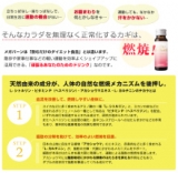 脂肪の燃焼を助けるL-シトルリンやL-カルニチンに加え、脂肪撃退の強い味方・アカショウマエキス、体の巡りをサポートするビタミンP(ヘスペリジン)を配合した燃焼系ドリンクです。