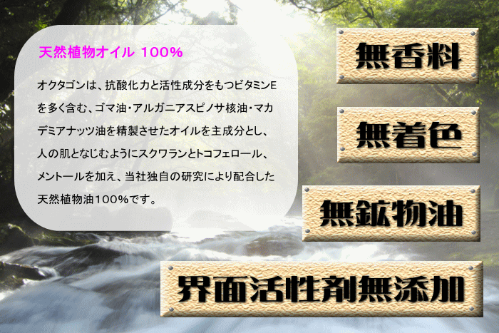『オクタゴン』は「たさない・ひかない・おしまない」を念頭に開発されました。100%植物油の原料を厳選しています。