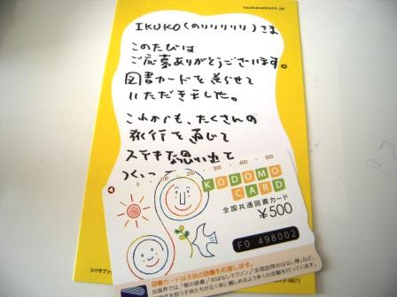 5名の図書カードに当選させていただきました! 子供が生まれるまで、本はよく読んでいたのですが図書館で借りるのがもっぱらで、 図書カードはそれほど使用していなかったのですが、 子供が生まれてからは、絵本を買ったりするので図書カードを使うことが多く 図書カードをいただくことがとても嬉しく感じるよ… 2010/06/04