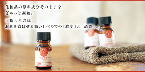 小瓶に入っているのは、化粧品の原料にそのまま使われる成分。