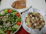 夜は、冷蔵庫内の余り物などにて、お初のスモークサーモンとクリームチーズの冷製パスタに 具材は、スモークサーモンと、クリームチーズディルに、玉葱と、ケーパース酢漬に、舞茸と、生きくらげ 付け合わせは、ブランジェ浅野屋松屋銀座店さんの、玄米クルミバゲット@199円(ハーフサイズ)に、 レタスと… 2012/07/13