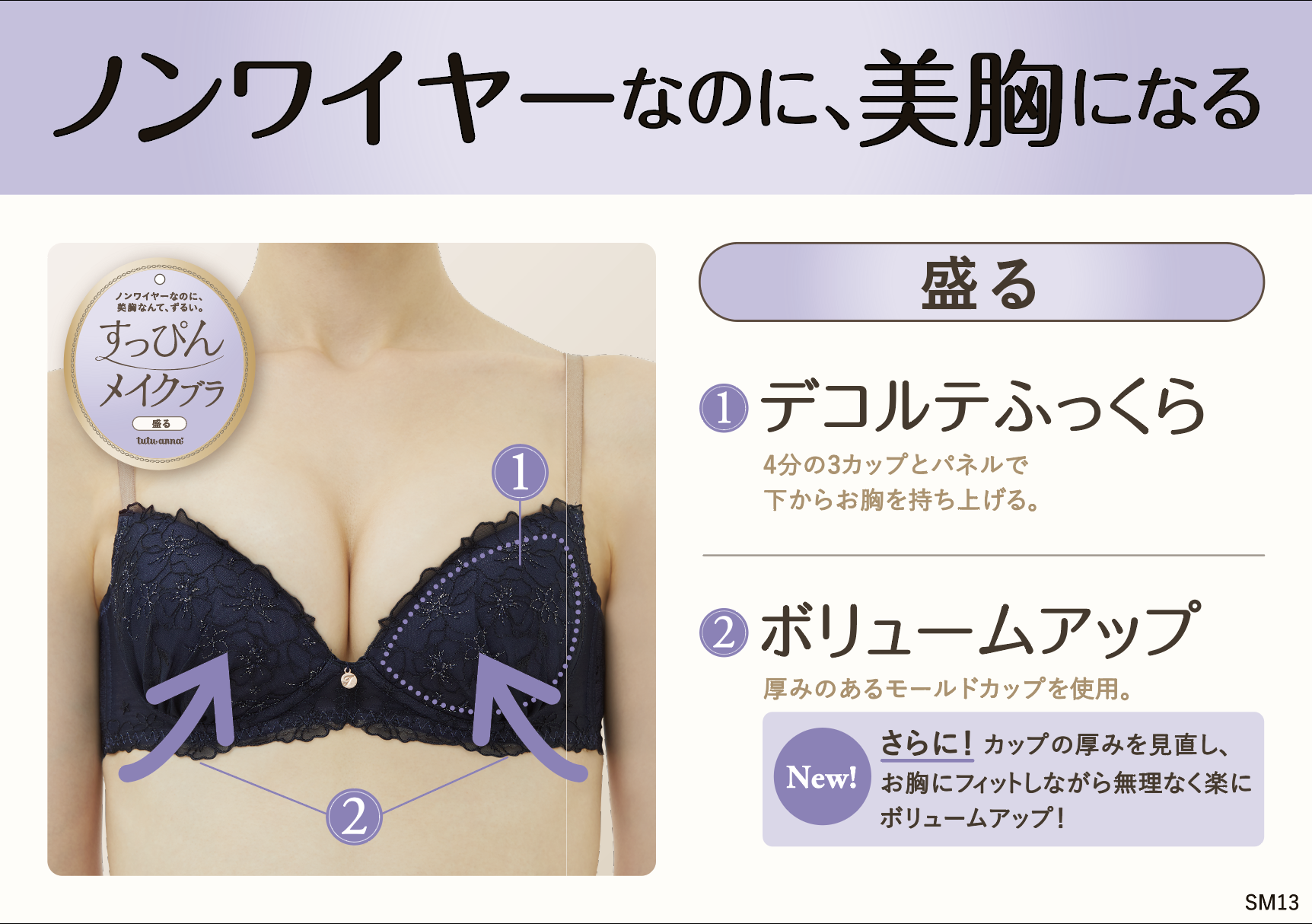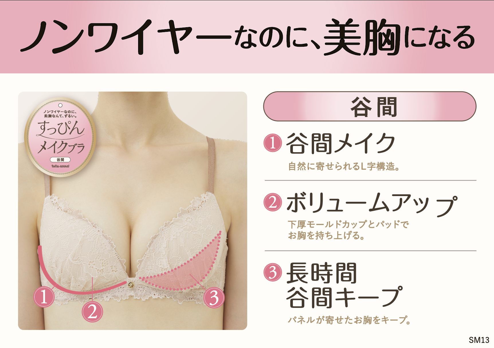 サイドパネルで寄せ、パッドでバストをボリュームアップ。