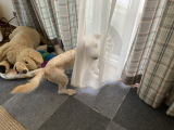 トイプードルの仲良し親子が愛らしい