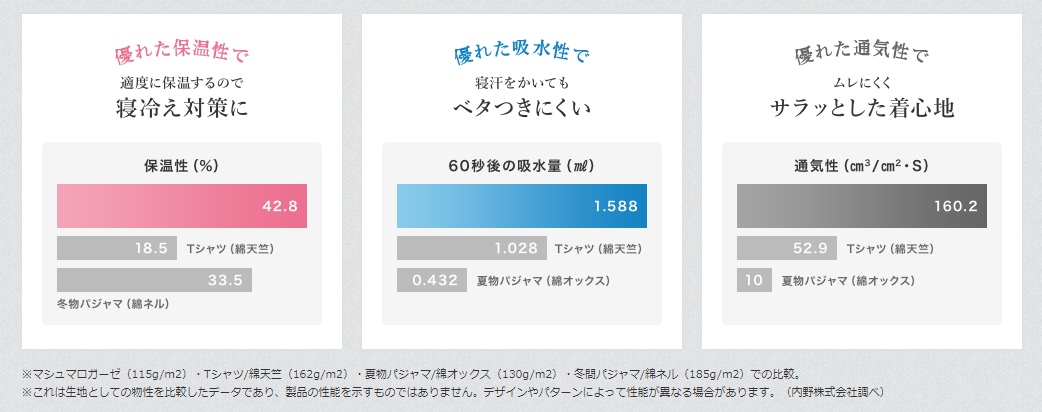 マシュマロガーゼ(R)快眠パジャマの気持ちのよいやわらかさ、軽さを実際に体感しませんか? |