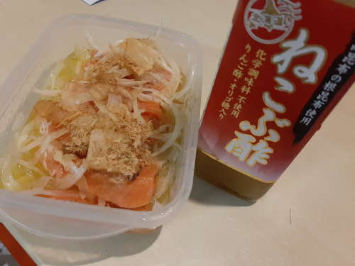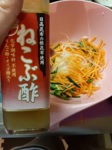 日高昆布の根昆布を使用したねこんぶ酢をいただきました そのままも飲めるみたいですが、私は料理に まずはマリネとして このままのレシピだと塩小さじ1なのですが、多いかな?と思ったので小さじ1/4程度に 逆に優しいお味になった気がします あとはポテトサラダの下味(いつもは普通の酢を使… 2020/07/29