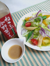 ねこぶだしに胡麻を合わせることにより出汁の旨み胡麻の旨みが加わり、酸味を抑えた大人から子供まで野菜を楽しめるソースが出来上がりました。