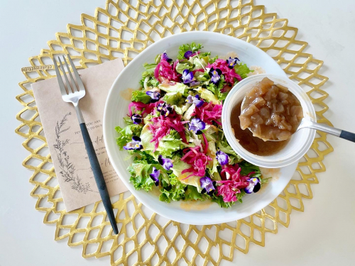 タマネギの甘みとニンニクのうまみがたまらないドレッシングです お野菜にかけても、お肉にかけても、どんな料理にも合うドレッシングで、使い勝手抜群です! さらに、色鮮やかで、食卓を素敵に彩ってくれます! 2021/08/18