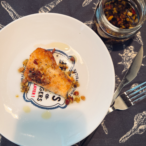 刻んだブラックオリーブ、フライドオニオン、アーモンド、ナチュラルチーズ、バジルなど数種類の素材により深みのある味に仕上げました。 芳香な香り漂うクセになる味で、ザクザク食感もヤミツキになる食べるオイルを是非お楽しみください。