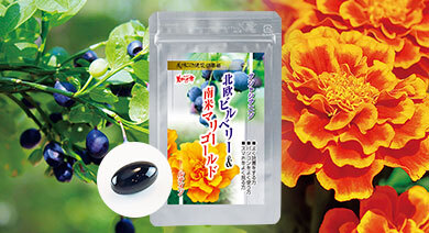 ビルベリーに含まれる紫の色素「アントシアニン」と、マリーゴールドに含まれるオレンジの色素「ルテイン」。自然由来の2つの成分がギュッと1粒に凝縮。