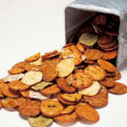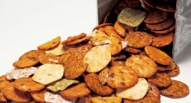食塩相当量:(醤油・胡麻・海老1.3g、ザラメ1.0g、海苔風味1.1g、砂糖かけ白1.2g、七味唐辛子1.9g、砂糖抹茶1.4g)/100g