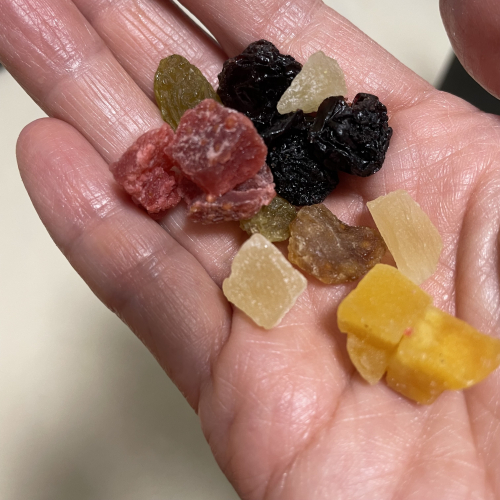 原産地:レーズン(チリ)、パイナップル・マンゴー(タイ)、苺・グリーンレーズン(中国)、無花果(トルコ)