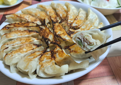 肉餃子はもちっとした皮で大きめの肉がたっぷり 肉々しい食感で食べる度に肉汁が溢れて食べ応えあります 野菜餃子はパリっとした皮で ニンニクとショウガか効いてるけど 野菜がたっぷり入ってるからあっさりめ! どちらも皮がしっかり目だから 破れにくくて焼きやすかったです◎ 2025/01/28