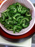 今日作ってみたのは、ゴーヤチャンプルーです 美味しそうなゴーヤをいただいたのでv わたを取って、薄切りにして、塩をふって、あく抜きします もやしはひげ根を取ります あと、豚丼の具人参玉ねぎを適当に切ります 豆腐を炒める→お皿に取りだす→豚肉を炒める→野菜投入 →しんなりし… 2009/09/15