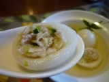 モニプラさんから 北海道とれたて美味いもの市さんの じゃが豚が届きました 冷凍のままのじゃが豚をゆでで 添付のスープで頂いてみましたよ 見た目はピンポン玉より大きめのお団子です じゃがいもを原料にした皮できていて 表面はつるんそし… 2011/08/21