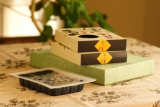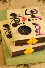 丹波と言えば黒豆。他の黒豆に比べ、約2週間から1ヶ月近くも、じっくりと熟成させる為、皮が薄く、実も柔らかく、大粒になります。目利きが選りすぐった黒豆を職人が独自の技で、塩と砂糖のみで黒豆の風味を最高に煮げました。