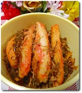 カニの女王本ズワイガニの特棒肉を入れた贅沢な松前漬けです。