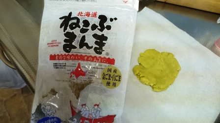 クッキーの生地にねこぶまんまと栄養を兼ねて明日葉パウダーも入れて焼きました昆布の部分がカリカリになって甘さとちょっと塩分がおいしいクッキーで止まりません不通にクッキーの生地を作り最後に混ぜ込んで焼いただけですこれはいい!砂糖を減らしてクラッカーのようにするのもオススメ! 2015/11/08