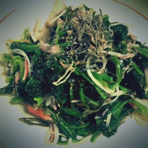 袋を開けると鰹節のいい匂いにつられて、猫登場ジップロックなので安心おにぎりにかけてパクリお出汁の味が口に広がり塩がいらない次に茹でたほうれん草とさいたカニカマ、ねこぶまんま入れてあえる盛り付けた上にもねこぶまんまをかけ、時短で作るねこぶ和え 醤油がなくても昆布のだしと粘りでとても美味しかった… 2016/09/25