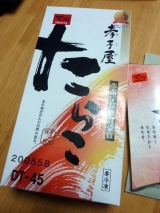 孝子屋と書いて、たかこやでも、こうしやでもありません ここやと読むそうです そんな孝子屋さんから立派なたらこが送られてきました Lサイズの一個は、はちきれそうなくらいかなり大きくて、ボリューム満点 冷凍品なので、食べたいだけ解凍して使えるので便利便利 明太子はよく買うけど、うす塩… 2011/07/14