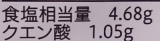 エネルギー:9.92kcal たんぱく質:0.25g 脂質:0.06g 炭水化物:2.10g ナトリウム:1840mg 食塩相当量:4.68g クエン酸:1.05g