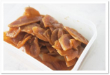 有機純米酢の酸味を加えた調味液に漬けこみ低温熟成させました。