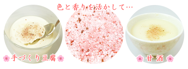 桜の上品な香りと、かわいいピンク色のお塩です。