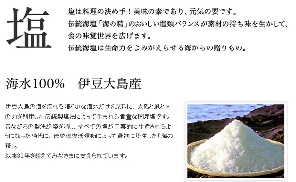 伊豆大島の塩メーカー海の精株式会社の通販部門「海の精ショップ」です。
