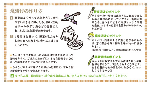 手軽においしい浅漬けが作れる「浅漬けのもと」です。